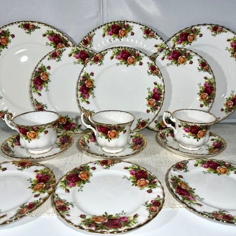 Det elegante porcelæn i den klassiske vintage stil giver sættet et tidløst og luksuriøst udtryk.