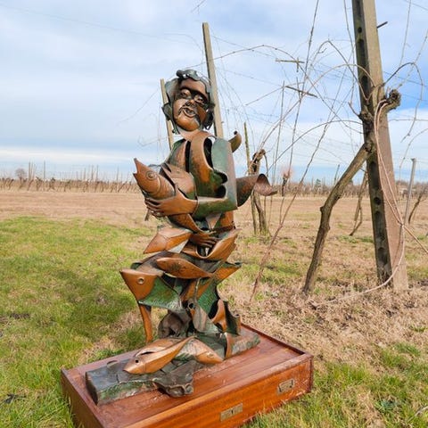 Dekorativ abstrakt bronzekunstværk af en sørgende mand. Sørgende person, melankolsk dybt følelsesladet skulptur.