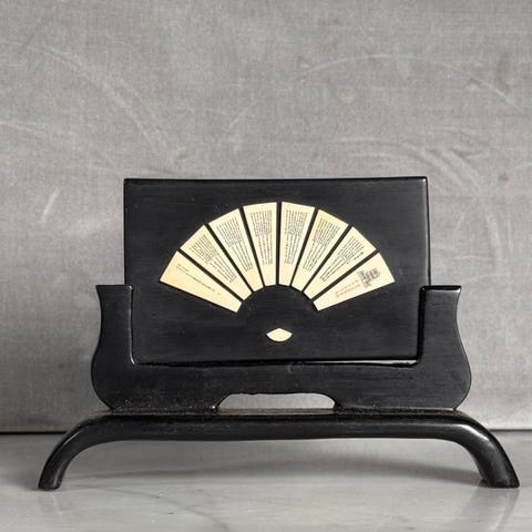 indviklet udskåret, boksen har en scene på låget, der viser en skikkelse iført revolutionsuniform, der krydser en bro.