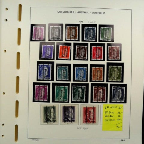 Østrig fra den 2. republik. Postfrisk samling af den 2. republik til cirka 1993 i to bind. Derudover også et par stemplede værdier. Grazer-overtryk postfrisk komplet gennemgået, desuden mange bedre værdier fra 1950’erne.