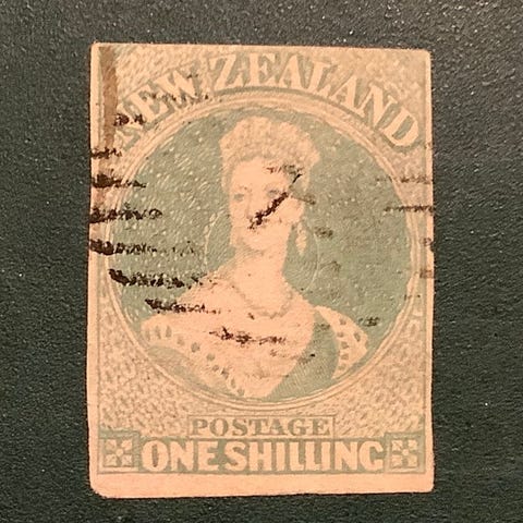 Oprindelse New Zealand, frimærke ‘2 Penny Blue Queen Victoria uden vandmærke med gode marger’, Michel 5, 1855, ubrugt uden gum, to små pletter noteret, katalogværdi €3.000 (Michel 2022). Klik på den blå "gå til varen" knap, for at købe eller byde på denne vare. Den samlede pris vil blive vist inden du afgiver dit bud.