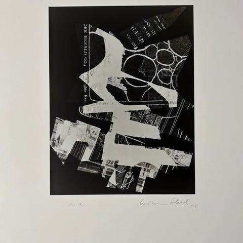 Fotogramm/ Schadografie, ca. 30 x 23,2 cm kaschiert på Bristolkarton 59 x 42 cm. Med blyantsnummereret, underskrevet og dateret.