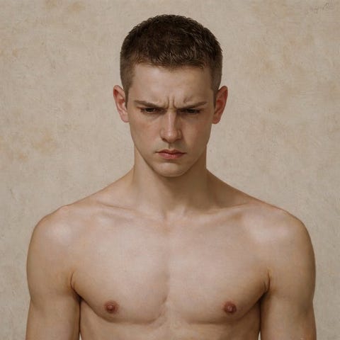 Dette maleri af Joseph CONI er et strålende eksempel på moderne realisme, hvor maleteknikken smelter sammen med en visuelt evokerende narration. De præcise penselstrøg og spillet mellem lys og skygge giver motivet en enestående livlighed, og fanger med mesterlighed detaljer i figurens anatomi og udtryk.