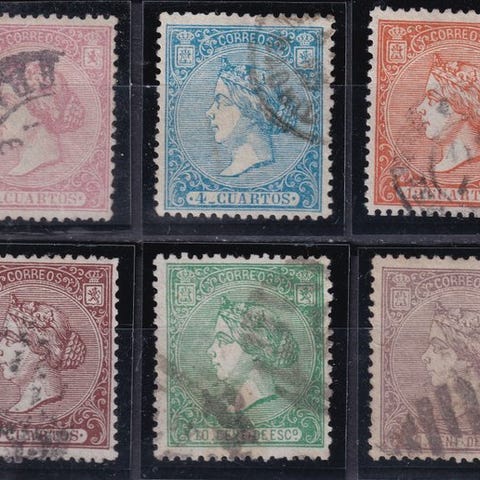 Svært sjældent frimærke på 19 Cuartos tilhørende Isabel II-serien fra 1865