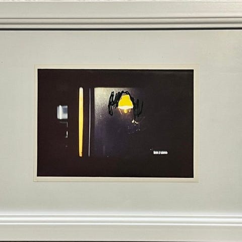 Mario Schifano, Volto Sfuocato, håndsigneret mixed media-verk på et fotografi i en elegant hvid ramme, 1990 originaludgave, 18 × 13 cm, 4 kg, produceret i Italien, i fremragende stand. Klik på den blå "gå til varen" knap, for at købe eller byde på denne vare. Den samlede pris vil blive vist inden du afgiver dit bud.
