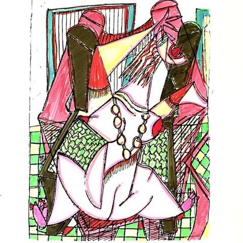 Værker i blandteknik, akryl, tusch og blæk på karton