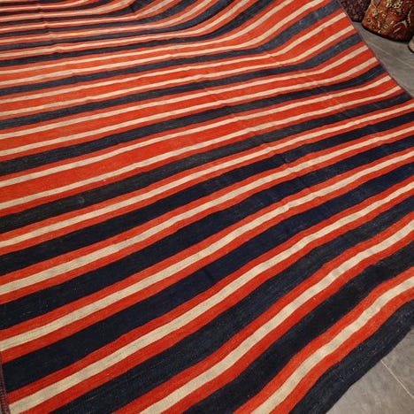 En smuk Sumakh-kelim fra Afghanistan præsenteres, som imponerer med sin unikke oprindelse og traditionelle håndværkskunst.