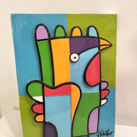 Kunstværk fremstillet ved montage af fotografier på plexiglas og underskrift