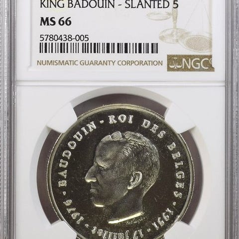 En rund belgisk mønt af 25 g i sølv 0,900 med Leopold II til 50-året for uafhængigheden, 1880, variant med 14 stråler til venstre, rillet kant, diameter 37 mm, 180° justering, oplag 6714, har cirkuleret som lovligt betalingsmiddel. Klik på den blå "gå til varen" knap, for at købe eller byde på denne vare. Den samlede pris vil blive vist inden du afgiver dit bud.