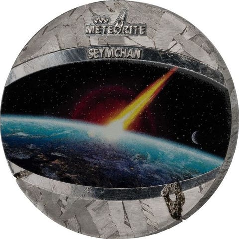 Denne fantastiske 1 oz mønt er dedikeret til Campo del Cielo-meteoritten, kendt for sin enorme krater. Mønten er lavet af 999 ægte meteoritter, har en Chromonite-farve og leveres i et etui sammen med ægthedsattesten. Begrænset udgivelse til kun 842 stk verden over!