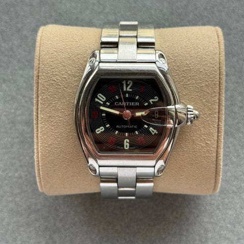 Cartier Roadster Pink Ribbon Breast Cancer Awareness, reference W62043V3, kvinders ur i rustfrit stål 30 mm med kvartsur, rosa dial og stålarmbånd, i meget god stand med få tegn på brug. Klik på den blå "gå til varen" knap, for at købe eller byde på denne vare. Den samlede pris vil blive vist inden du afgiver dit bud.