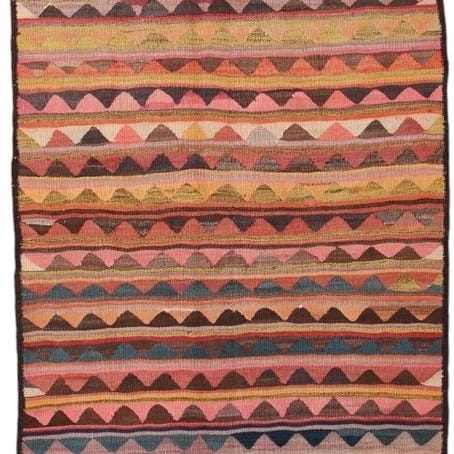 Fremstillet af fin uld og naturlige farver, er dette armenske kilim i god stand.