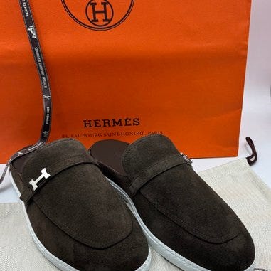 Sublime par d’escarpins Hermes i sort ruskind med sølv Kelly-ankelbøjle Ville.