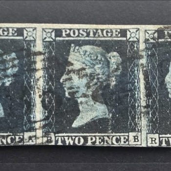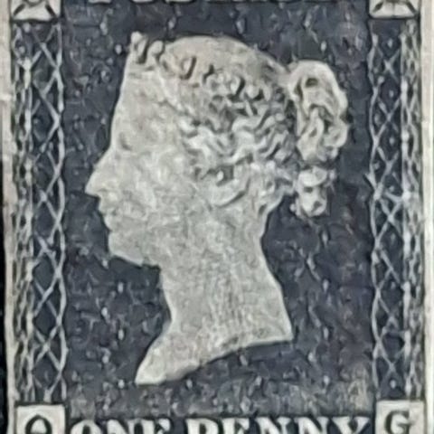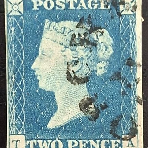 Storbritannien 1841 - QUEEN VICTORIA 1d Rød aflyst i grøn. 4 kanter. Bystempe...