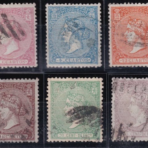 Spanien 1865 - hele serien uden 19 kvartaler - Edifil 74/79a