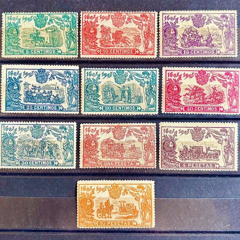 Spanien, Quijote-serie komplet, Edifil 257/66, frimærker fra 1910, generelt god stand. Klik på den blå "gå til varen" knap, for at købe eller byde på denne vare. Den samlede pris vil blive vist inden du afgiver dit bud.