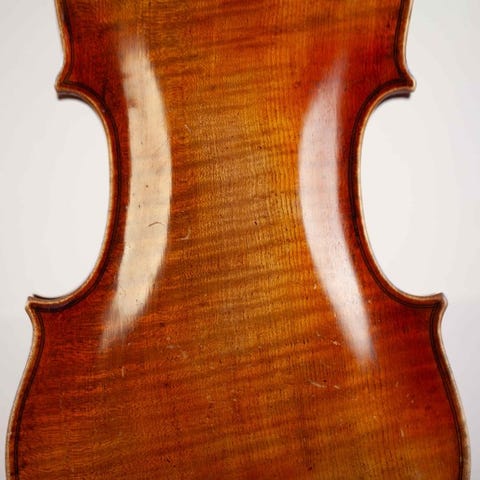 Det er en fuldstørrelseviolin (samlet længde: 591 mm, krop: 357 mm, øverste buer: 167 mm; midterbuer: 109 mm; nederste buer: 205 mm) med label indeni: