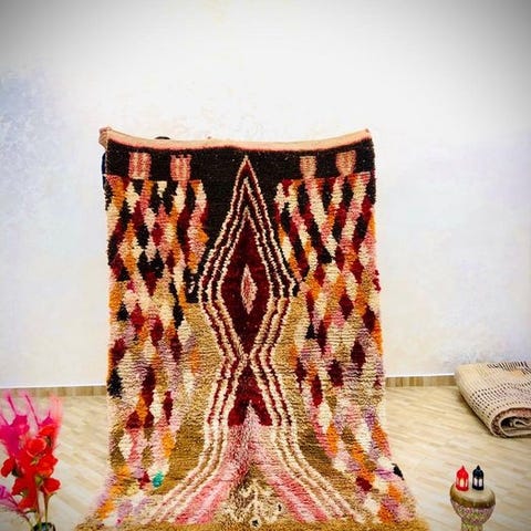 Lad dig forføre af den naturlige elegance i dette håndlavede boules-tæppe, en enestående skabelse fremstillet i hånden i en marokkansk kooperativ.