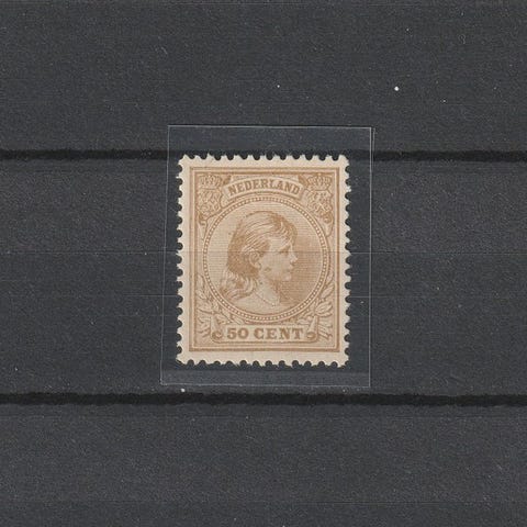 Oprindelse Nederlandene, ubrugt frimærke fra 1891–1984, NVPH 44, titel 'Koningin Wilhelmina type hangend haar', attest af Henk Vleeming. Klik på den blå "gå til varen" knap, for at købe eller byde på denne vare. Den samlede pris vil blive vist inden du afgiver dit bud.