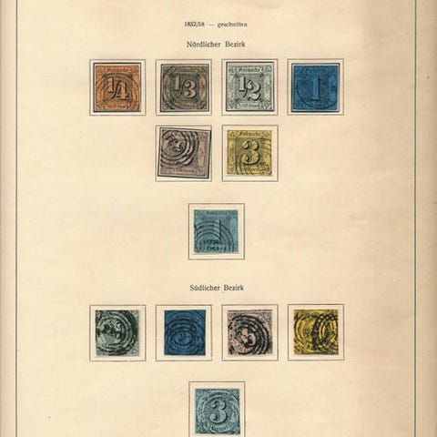En komplet, stemplet samling i hovednumrene fra Preussen, dateret 1850–1867, delvis med dubletter. Klik på den blå "gå til varen" knap, for at købe eller byde på denne vare. Den samlede pris vil blive vist inden du afgiver dit bud.