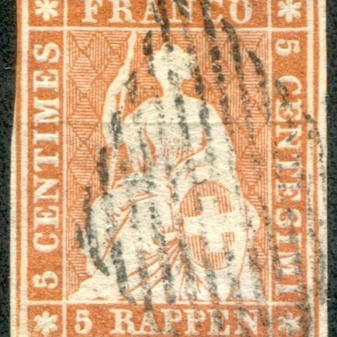 Schweiz 1882 - Serie Kors 5 øre brun karminrød ny - Unificto 59