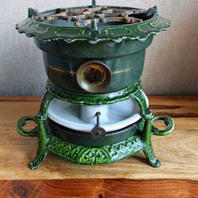 Udstyret med en brænder komplet med flamme, når man tilsætter petroleum eller spiritus, tænder rechauden.
