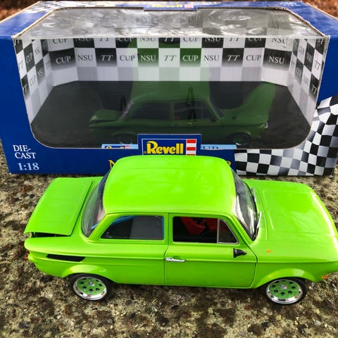 Modellen fra Revell NSU TT Cup-serien med startnummer 188 i gul er i absolut nyskick, var aldrig udpakket og er dermed ubrugt.