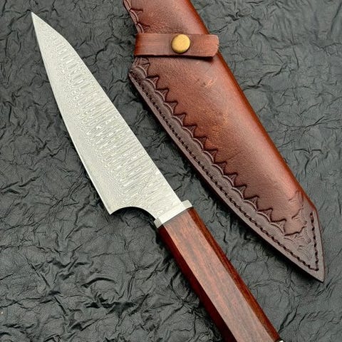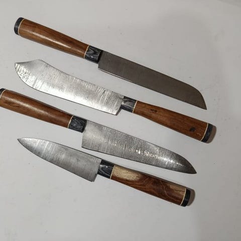 Bordknive af kulstål. Dette er et håndværk udøvet af højt uddannede og dygtige knivfremstillere. Strengt håndlavet for at sikre, at disse meget professionelle knive har høj ydeevne. Disse knive er fra Kitchen Champ Pro, og mærkets navn skaber udelukkende professionelle køkkenknive. Denne knivduo er meget fint lavet med præcision og klasse. Modellerne er meget professionelt formet, smukt designet og skåret meget fint. Knivene er håndlavede med stil og klasse. Håndtagene er lavet af omhyggeligt udvalgt burltræ, rosentræ, Paka-træ, harpiks, Micrta osv.
