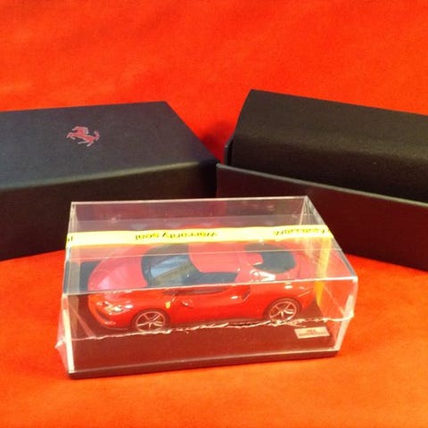ÆGTE FERRARI – officiel modellino forbeholdt kun Ferrari-ejere, vidunderlig SF90 Spider Nero tre-lags sort. Et unikt stykke og umuligt at få fat i.