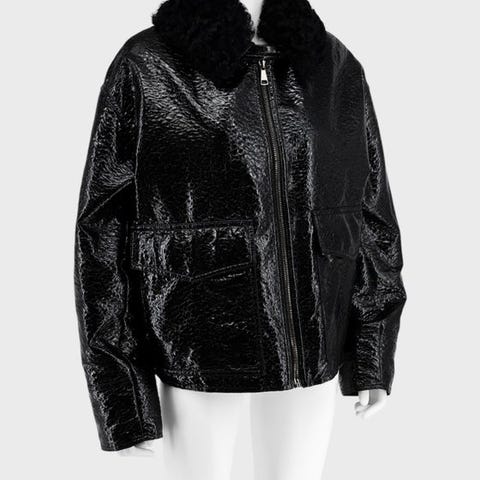 Designet forener den minimale elegansen som kjennetegner det italienske huset med en moderne og konsis estetikk: høyt krage med justerbart belte, frontlukking med sentral glidelås, sidelommer med glidelås og en strukturert, svart skinnbunn som fremhever silhuetten.