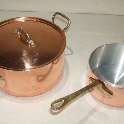 Een fraaie set van 6 Franse koperen pannen - Pande - Kobber, messing