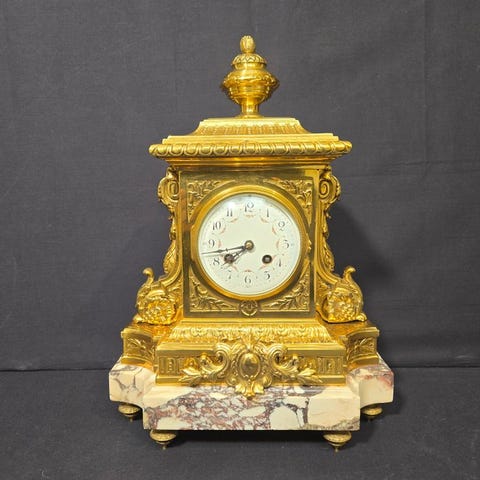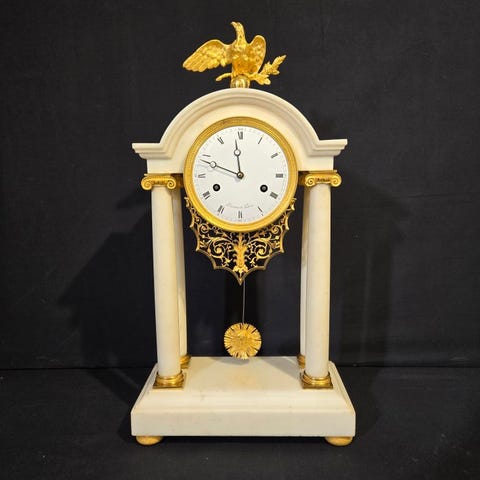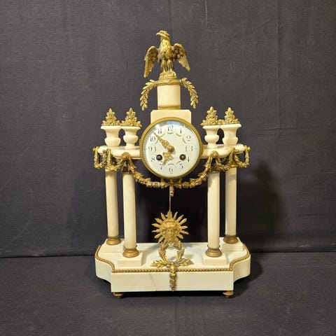 Hej, her er endnu et top tilbud fra tidshandleren. En pragtfuld fransk marmor pendel med bronzen ornamenter. Urværket er sonisk rengjort og revideret, fungerer og slår fejlfrit.