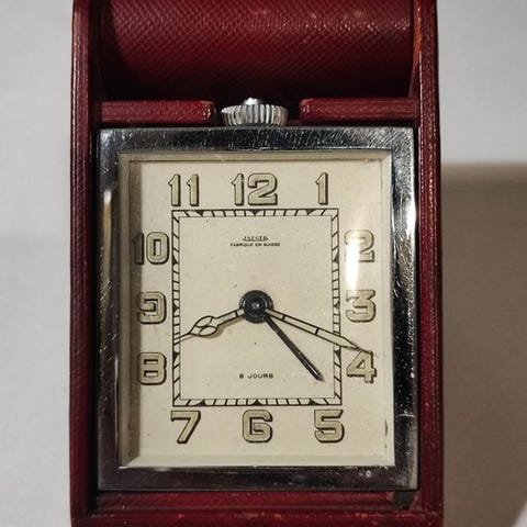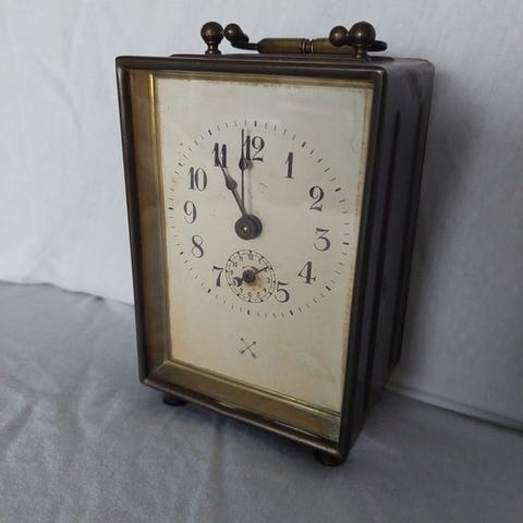 Officers pendulclock i forniklet messing, Hour Lavoigne, estimeret periode 1970–1980, i funktion med nummereret alarm, 10 × 7 × 4 cm, vægt 600 g, mekanisk bevægelse med 1 dages gangreserve, opkrøvelsnøgle inkluderet, oprindelse Frankrig. Klik på den blå "gå til varen" knap, for at købe eller byde på denne vare. Den samlede pris vil blive vist inden du afgiver dit bud.
