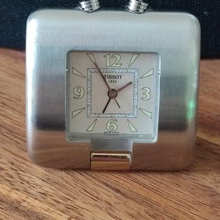 1950–1960 Tulxis bordur ur i messing med mekanisk urværk, 8-dages kraftreserve, uden ringeri, schweizisk oprindelse, i næsten ny stand og i fungerer, mål 7,5 × 7,5 × 7,5 cm, vægt 200 g, ingen opkrwide nøgle. Klik på den blå "gå til varen" knap, for at købe eller byde på denne vare. Den samlede pris vil blive vist inden du afgiver dit bud.