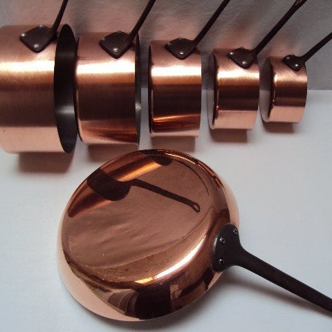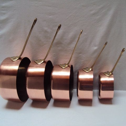 Magnifique lot 2 sauteuses cuivre étain et 4 casseroles cuivre alu - Kasserol...