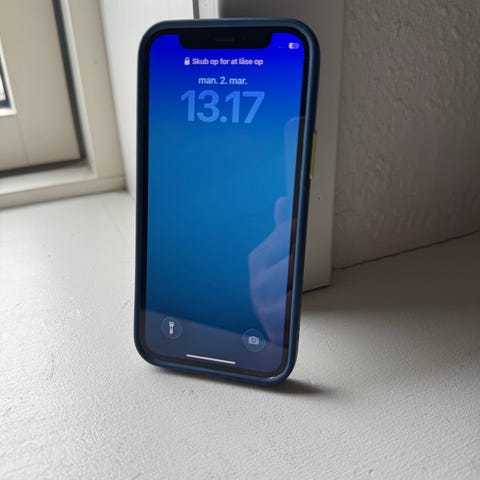 Hej. Jeg sælger denne iPhone 12 mini. 64gb. Omkring 2 år gammel. 86 procent batteri. Står i rigtig flot stand på skærm og alt virker. Har dog en revne på bagsiden, men den er ikke rigtig overfladisk, men mere under glasset, hvis det giver mening.
