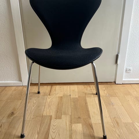 To 7'er stole, malet gule, men malingen begynder at blive slidt. Skallen er intakt og ryggen er stadig hård. Understellet fejler intet. 800 pr stk.