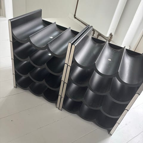 Materialet er børstet stål / aluminium - denne i mørk grå.