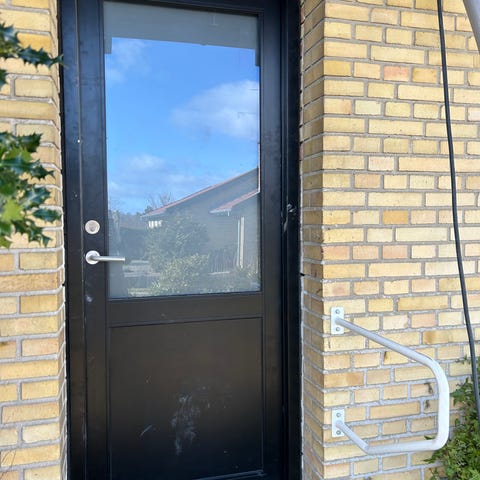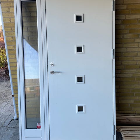 Døren er velegnet som bagdør eller terrassedør og har vinduespartier, der giver godt lysindfald. Bemærk, at låsecylinder/greb følger ikke med.
