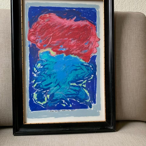 Erik Hallgrímsson maleri akryl på lærred farverigt motiv