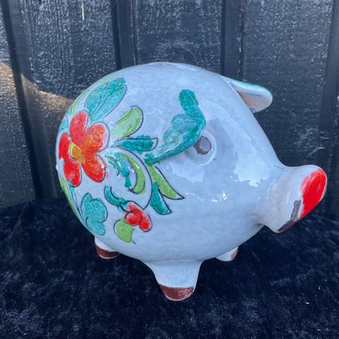 Stor og flot gammel sparegris i keramik fra Guldkroken HJO Sweden.