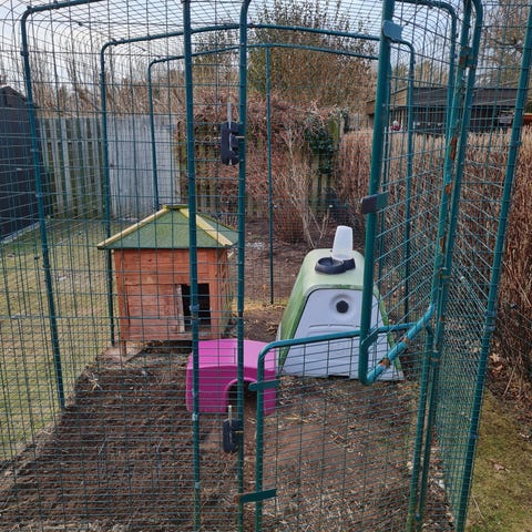 Komplet sæt til forbindelse af kaninbur og løbegård. Brugt, men i fin stand.