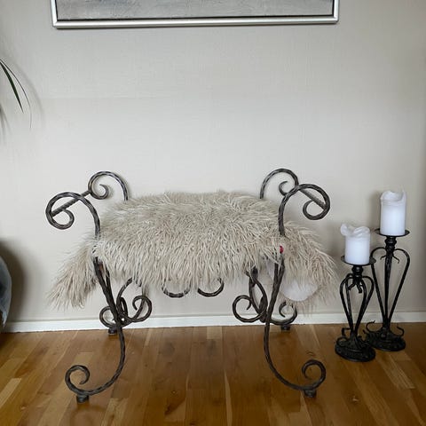 Smuk jernskammel med gedeskinds sæde, som pt sidder løst.