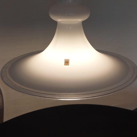 Smuk antik opalglas pendel i hvidt opalglas. Denne type lampe er ofte produceret af kendte mærker som Holmegaard
