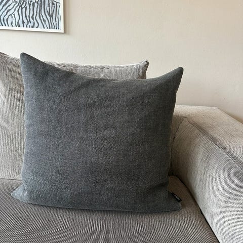 4 stk helt nye og ubrugte pyntepuder med dun underpude. Puderne er i velour møbelstof fra Louise Smærup Design. Normalpris 600 kr pr stk. De 3 sorte er stadig med tags på, måler 60 x 40 cm. Den rosa måler 50 x 50 cm. Alle 4 med lædersnip. Har været opbevaret ordentligt i ikke-ryger hjem. Helt nye og ubrugte, sælges for bekendt, som ikke fik dem returneret.