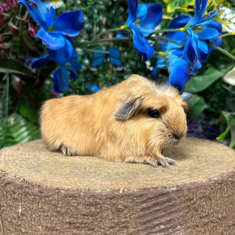 Han ligner vitterligt et lille nuttet får, han er texel som betyder at han bliver langhåret med krøller, man skal derfor forvente at der er lidt pelspleje forbundet med denne lille nuttet fyr.