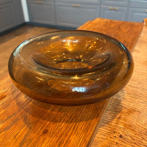 HOLMEGAARD Glas askebæger i klart blåligt glas. Kan også bruges til fx smykker. Askebægeret er massivt og står stabilt på en plan bund. Velegnet som lille dekorativ glasting i hjemmet. Eventuelle små mærker eller luftbobler i glasset kan forekomme, som vist på billederne. Deraf prisen.