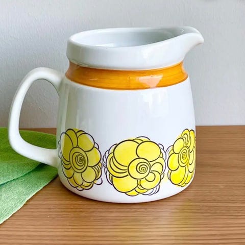 Højde 15 cm. Ideel til sommersaftevand, fløden til jordbærrene eller pandekagedejen. Retro og hygge til køkkenet.