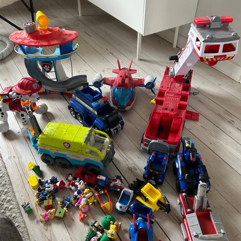 Der er chases politibil, rubles gravemaskine, robothunds flyvemaskine og chase fjernstyret bil. Derudover er der en masse Paw patrol figurerer og rider.