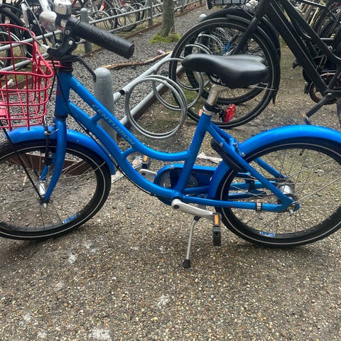 Kædeskærm, støtteben, bagagebærer og kurv foran. Udstyret med fodbremse bagtil og håndbremse foran.